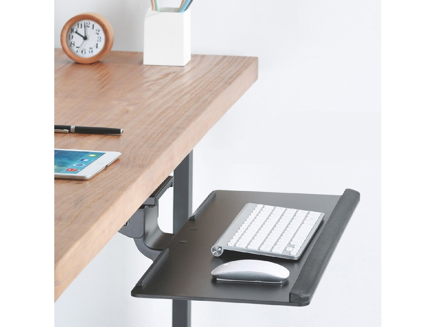 Polička na klávesnicu Fiber Mounts M7C95 Plne nastaviteľná doplnková polička na klávesnicu, rozmery 670x255mm Profesionálna plne nastaviteľná stolová doplnková polička na klávesnicu a myš, ktorá poskytuje skutočné ergonomické riešenie pre Vašu najpohodlnejšiu prácu. Nastavenie vo všetkých polohách s aretáciou. Ak požadujete to najlepšie a záleží Vám na zdravom pracovnom štýle, túto poličku si zamilujete. Profesionálna stolová polička na klávesnicu, plne nastaviteľná: vysúvacia, otočná, sklopná, výškové nastavenie 34cm, aretácia polohy - Fiber Mounts M7C95 Technické údaje: nosnosť 2kg výsuvná 470mm výškové polohovanie 340mm otáčanie +/- 180° rozsah naklápania +15 / -13° rozmery police 670 x 255 snadné schovanie poličky s klávesnicou pod stolovou doskou aretácia polohy najvyššia kvalita snadná inštalácia a ovládanie zvýšenie komfortu a pracovného výkonu farebné prevedenie čierne záruka 3 roky Precízne veľmi jednoduché nastavovanie poličky na klávesnicu Fiber Mounts M7C95 Ušetrite na svojom stole veľa miesta - dajte klávesnicu a myš na túto výsuvnú poličku a kedykoľvek ju môžete uschovať pod stolovou doskou. Polička je plne nastaviteľná a pri práci poskytuje vysoký komfort.