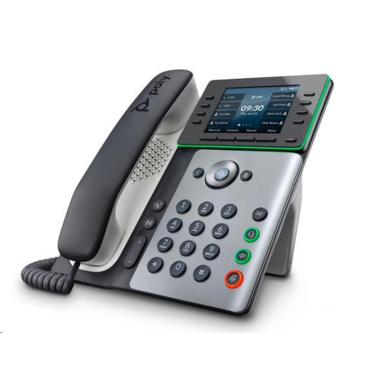 | Audio | Poly HD Voice; Technológia Poly Acoustic Clarity zabezpečuje plne duplexné hovory a potláča akustickú ozvenu aj okolité šumy; Technológia Poly Acoustic Fence potláča okolité hluky pri použití slúchadla alebo káblovej náhlavnej súpravy; Technológia Poly NoiseBlockAI odstraňuje väčšinu okolitého hluku pri používaní konferenčného reproduktora; Aplikácia Poly Computer Audio Connector nainštalovaná v počítači (len Windows) umožňuje vybrať telefón pre zvukový vstup a výstup počítača a použiť s počítačovými aplikáciami slúchadlá, voliteľné náhlavné súpravy a handsfree hlasité odposluchy; Širokopásmový zvuk TIA-920, v súlade s typom 1 (plne duplexný IEEE 1329); Individuálne nastavenie hlasitosti s vizuálnou spätnou väzbou pre každú zvukovú cestu; Detekcia hlasovej aktivity; Komfortné rušenie hluku; Generovanie tónov DTMF (RFC 2833 a v pásme); Prenos zvukových paketov s nízkym oneskorením; Adaptívna pamäť na vyrovnanie oneskorenia |