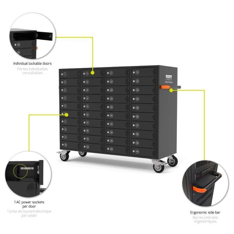 .PORT nabíjecí skříňka pro 40 zařízení, individuální zámky, černá