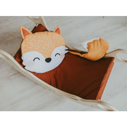 Mäkký a roztomilý poťah v podobe zrzavej líšky je doplnkom k našej Montessori hojdačke 5in1. Vyztužená podložka premení multifunkčnú hojdačku na pohodlnú kolíšťa s príjemným hojdáním aj lenošením. Kmotrička líška bude milou spoločníčkou, ktorá vašej holčičke aj chlapcovi s radosťou prevedie ríšou snov. Podložku v tvare zvieratka k hojdačke pripevníte ľahko, pomocou suchých zipsov.