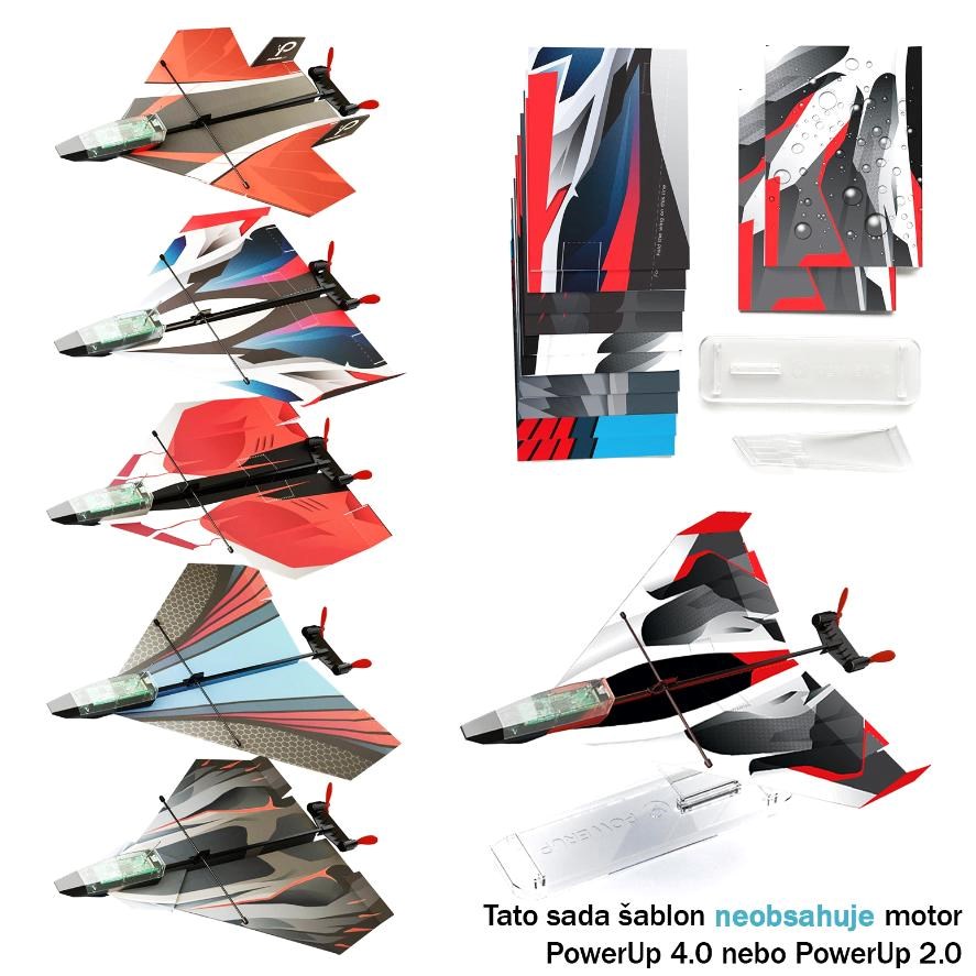 S originálnou doplnkovou sadou šablón pre motory PowerUp 4.0 a PowerUp 2.0 získate celú letku nových stíhačiek a s nimi aj rad návodov na výrobu pokročilých modelov.