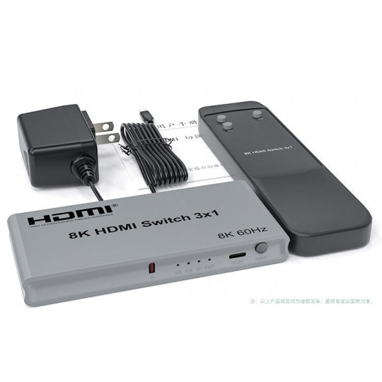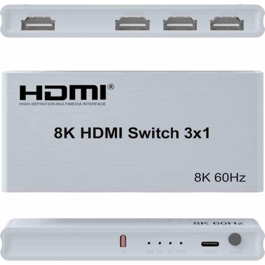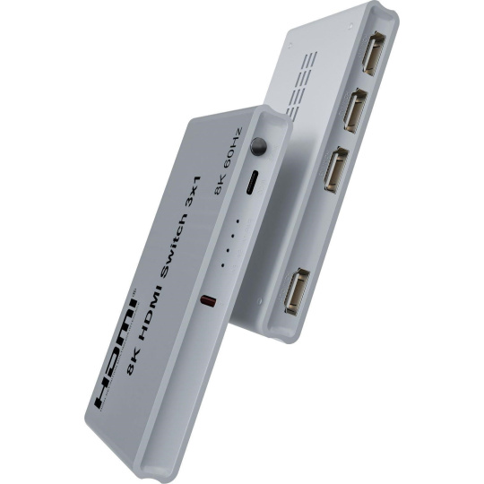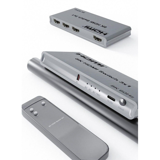 PremiumCord 8K@60Hz, 4K@144Hz HDMI prepínač 3:1 s diaľkovým ovládačom