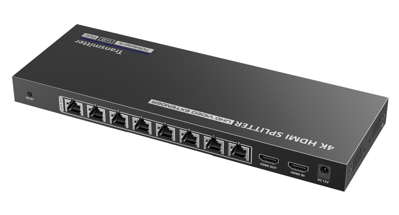 Splitter+extender umožňuje pripojiť dve HDMI monitory na vzdialenosť 70m a zobrazit UHD 4K@30Hz až na 70m