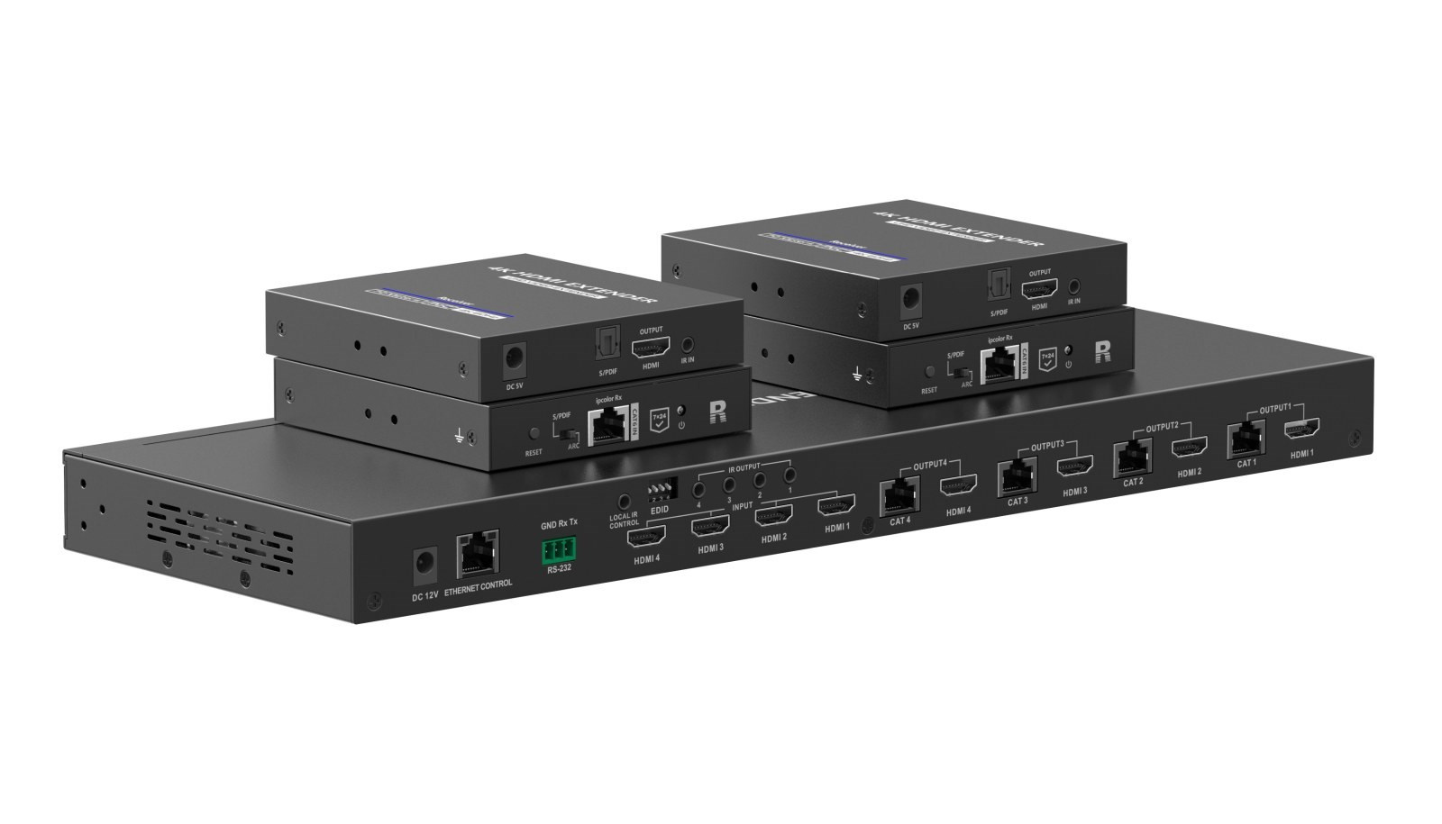 Umožní prepínať a prepojiť štyri zdroje HDMI signálu na 4 HDMI zobrazovacie zariadenia, monitory na veľkú vzdialenosť až 70m pomocou UTP kábla a navyše 4 lokálne monitory