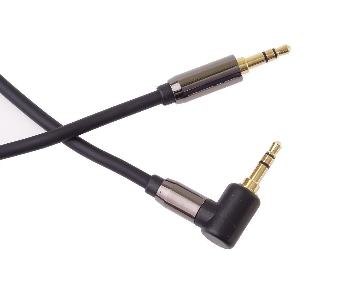 .PremiumCord HQ stíněný kabel stereo Jack 3.5mm - Jack 3.5mm zahnutý 90°, 1,5m