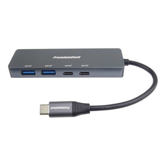 PREMIUMCORD Hub USB-C na 2x USB 3.2 Typ-C +2x USB 3.2, 5G SuperSpeed, Aluminum