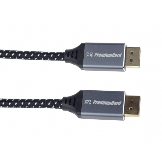 PremiumCord DisplayPort 1.4 pripojovacie káble M/M pre rozlíšenie 8K, kovové krytky a pozlátené konektory, 1 m