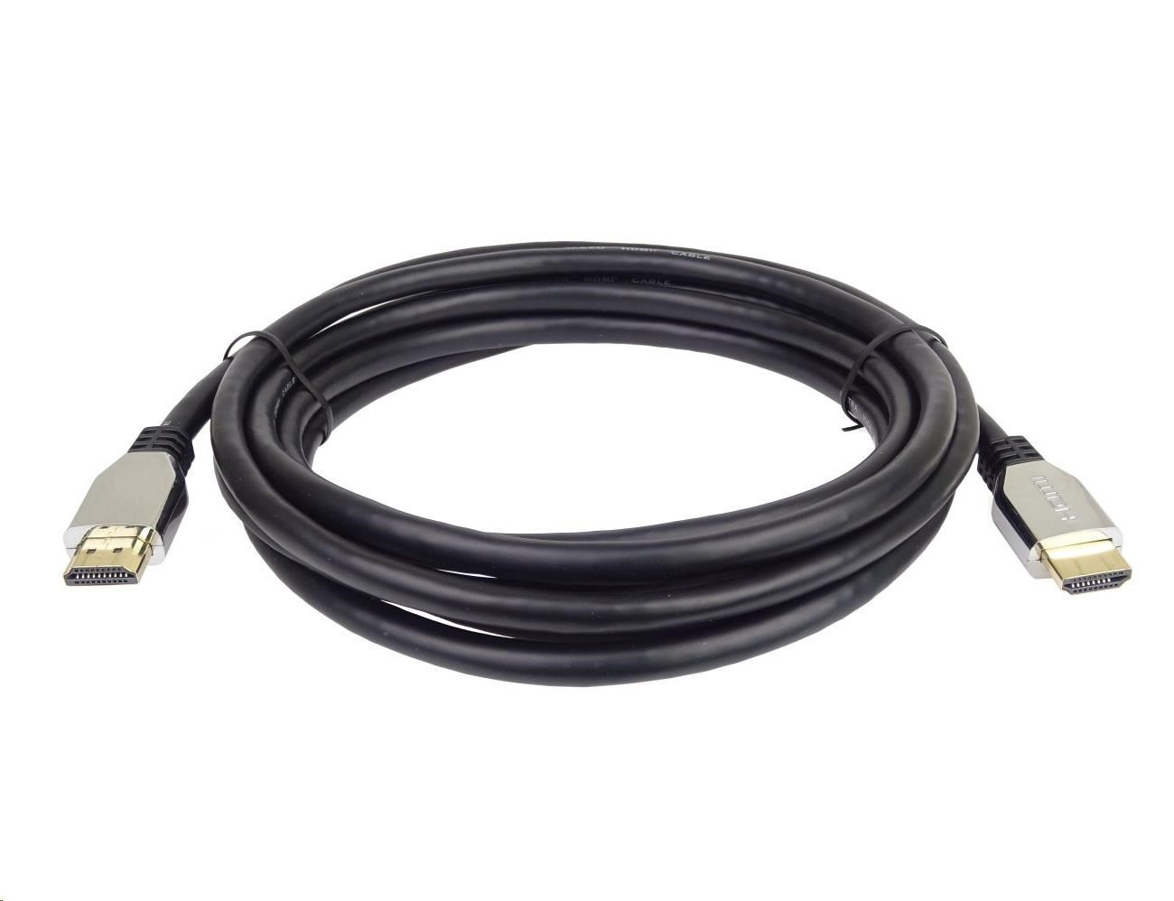 Kábel HDMI PREMIUMCORD 2.1 vysokorýchlostný + ethernetový kábel (krytky zo zinkovej zliatiny, pozlátené konektory) 3 m
