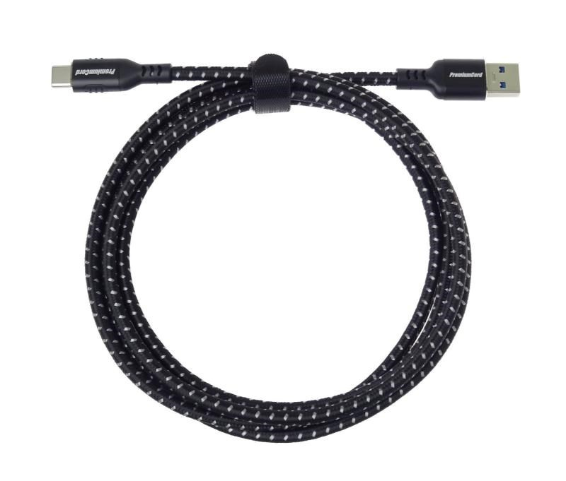 PremiumCord kábel USB-C - USB 3.0 A (USB 3.2 generácia 1, 3A, 5Gbit/s) 3m bavlnený opletenie a kovové hliníkové konektory