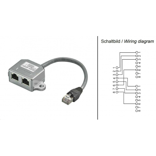 - adaptér na pripojenie a rozdelenie dvoch pripojení do počítačovej siete cez jeden TP kábel