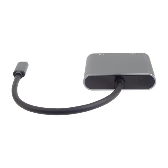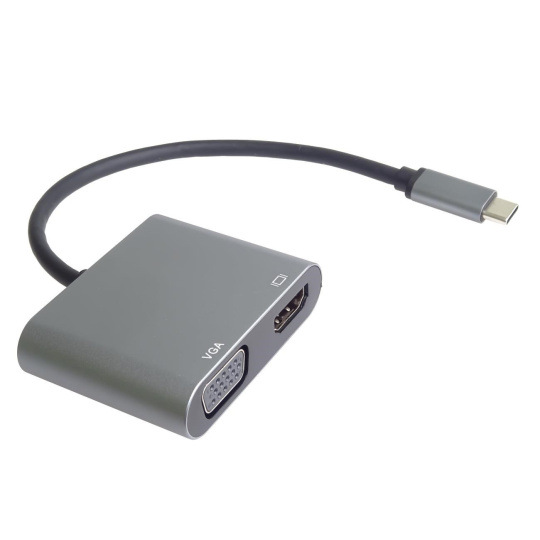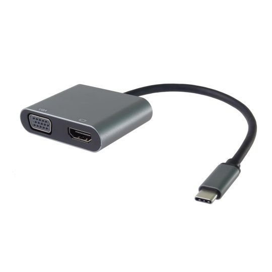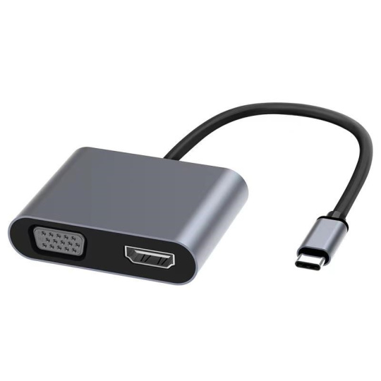 Táto adaptér umožňuje vysoko kvalitný prevod videa a zvuku z USB-C konektora na HDMI a VGA konektor pre dva monitory/TV/projektory. Funguje ako externá grafická karta s dvoma výstupmi.