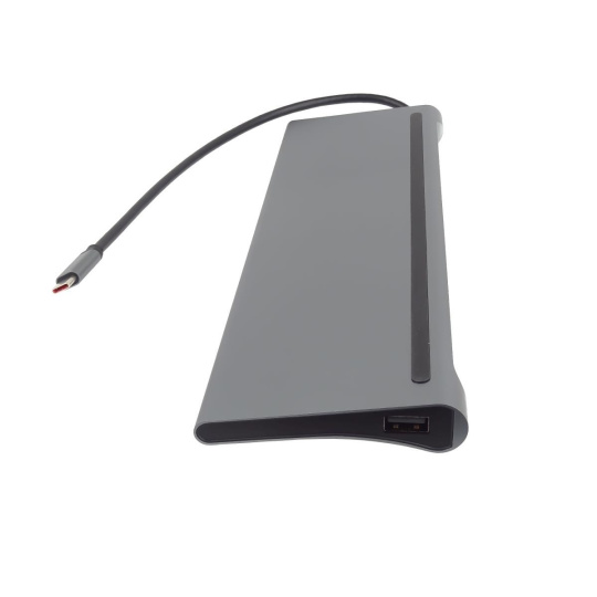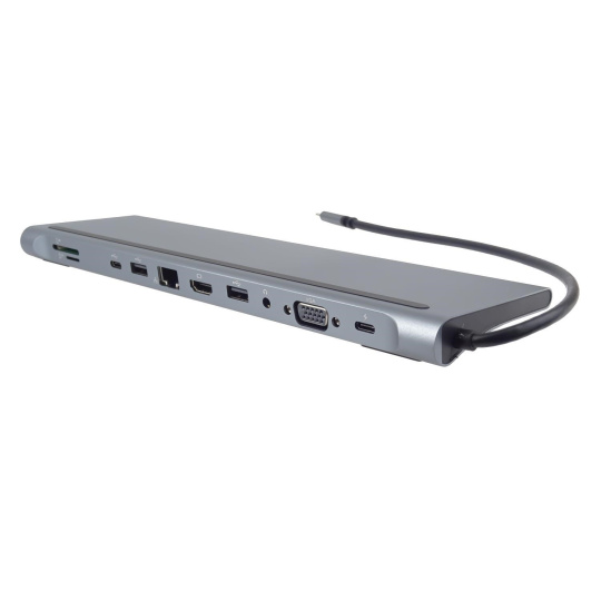 PREMIUMCORD Dokovací stanice USB-C 10v1, 1xHDMI, 1xVGA, 2xUSB-C, 3xUSB, 1xRJ45, čtečka SD karet, šedá