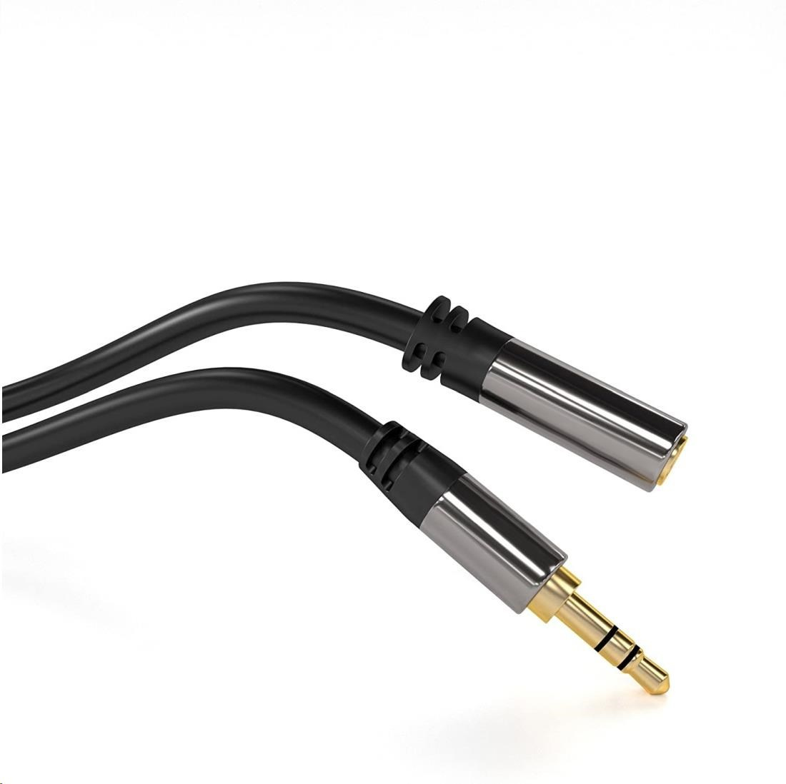 Predlžovací kábel PREMIUMCORD, Jack 3.5 mm - Jack 3.5 mm M/F 1,5 m