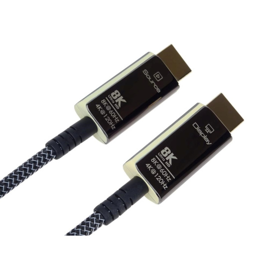 Optický HDMI 2.1 Ultra High Speed 8K@60Hz alebo 4K@120Hz kábel slúži na prepojenie dvoch audio/video zariadení cez moderné HDMI rozhranie, ako je napr. HD-DVD/BluRay prehrávač a LCD/Plazma televízor. Kábel prenáša digitálny zvuk aj obraz a podporuje digitálnu ochranu obsahu HDCP.