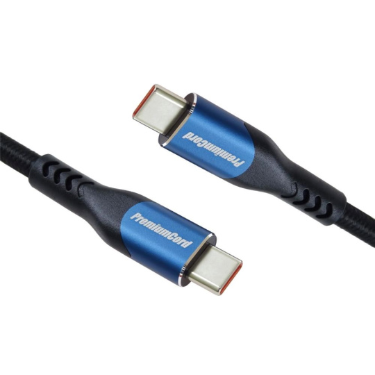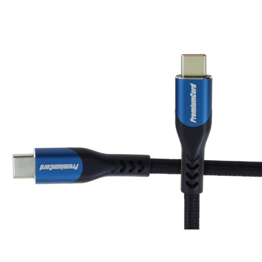 PremiumCord USB-C kabel ( USB 3.2 GEN 2x2, 5A, 100W, 20Gbit/s ) 1,5m, bavlněný oplet