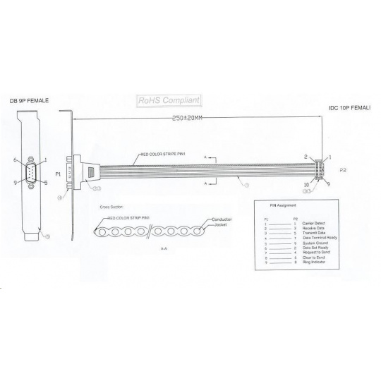 Výstup pre sériový port RS232 zo základnej dosky počítača na záslepku. Výstup sériového portu zo základnej dosky počítača na záslepku na zadnej strane počítača. - konektor Canon 9M na záslepke - vnútorný 2x 5pinový konektor - dĺžka kábla 23 cm..