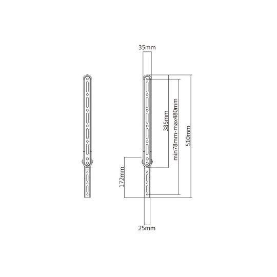 Univerzálny prídavný držiak na upevnenie soundbaru alebo reproduktora pod alebo nad televíziu zavešenou na držiaku TV. Vhodné pre všetky typy televíznych držiakov. Nastaviteľná dĺžka ramien 78-480mm, pevná konštrukcia, nosnosť 15kg.