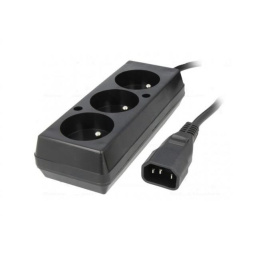 Predlžovací prívod 3x230V CEE7/5 pre pripojenie do UPS s konektormi IEC 320-C14. Počet výstupných zásuviek: 3 Dĺžka kábla: 30cm Maximálne napätie: 250V Maximálny prúd: 10A.Prodlužovací přívod 3x230V pro UPS (IEC320-C14), 30cm