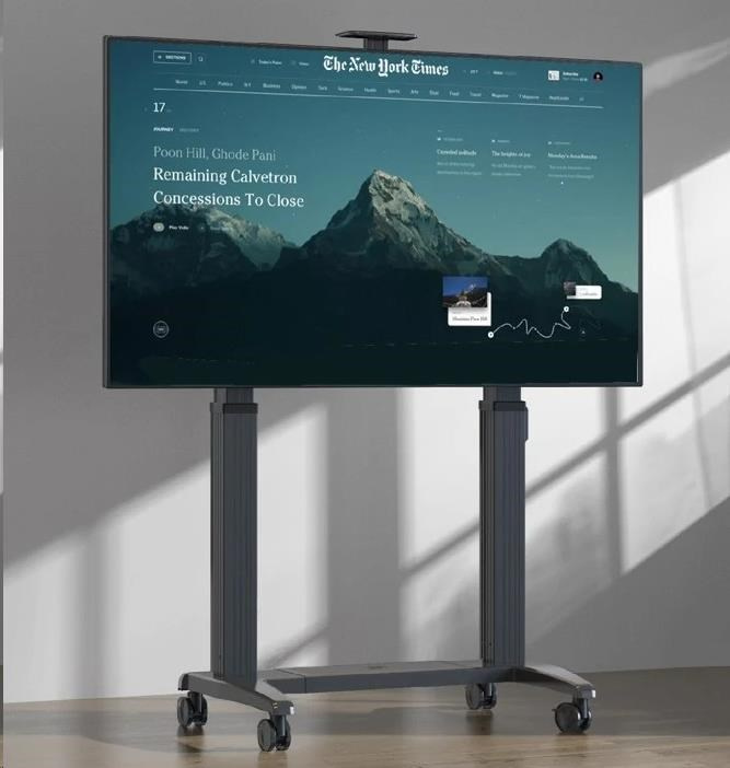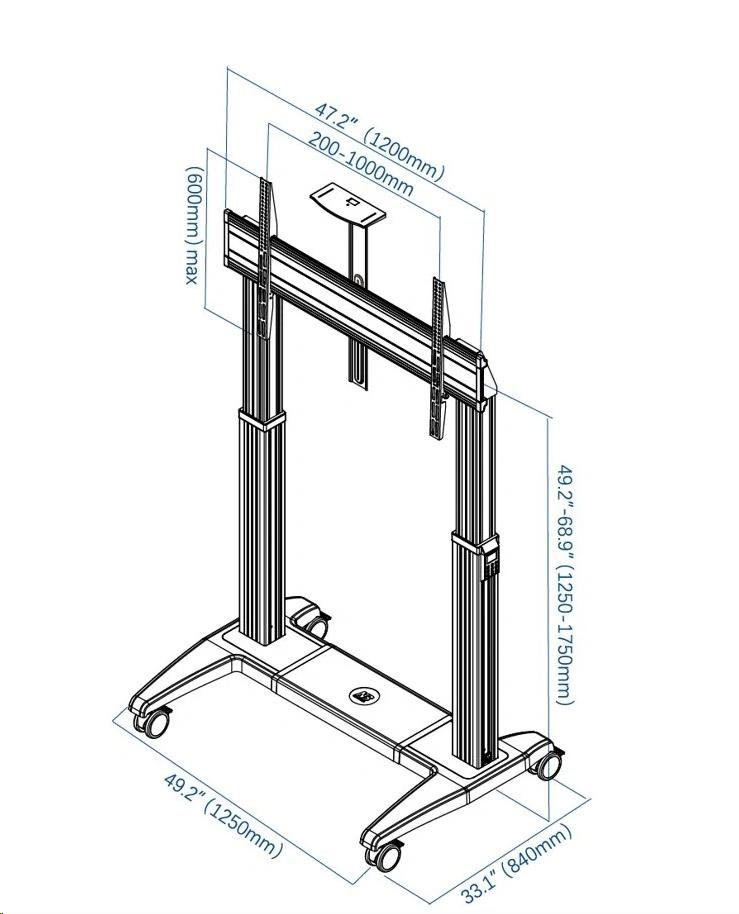 profesionálny TV stojan NB GF150 Profesionálny motorizovaný stojan na TV 60" - 120", elektrické nastavenie výšky 1250-1750 mm, nastavenie výšky obrazovky na paneli alebo diaľkovým ovládaním, zásuvka na pripojenie TV, 2 výkonné 150W motory, horná police 255x130 mm, kolieska s aretáciou, podporované VESA štandardy 200x200 až 1000x600, nosnosť 136 kg Motorizovaný profesionálny televízny stojan najvyššej kvality a v krásnom dizajne. Stojan je ideálny na televízie, displeje, dotykové obrazovky alebo monitory s uhlopriečkou od 60" až do 120". Umožní vám veľmi ľahko nastaviť presnú výšku obrazovky buď na ovládacom paneli umiestnenom na stĺpiku stojanu alebo diaľkovým ovládaním. Možnosť uloženia 3 výšok do pamäte stojanu. V hornej časti stojanu je integrovaná zásuvka na pripojenie obrazovky - nie je teda nutné pripojiť do el. siete zvlášť stojan a zvlášť obrazovku - pripojením stojanu budete zároveň napájať aj pripojené zariadenie, navyše nie je potrebné riešiť dostatočnú dĺžku prívodného kábla. Stojan sa dodáva vrátane hornej police na umiestnenie príslušenstva (kamera, projektor, mini PC a pod.) s rozmermi 255x130 mm. Telo stojanu je z hliníka, zavesný systém je oceľový. Podstava stojanu je vybavená 4 otočnými kolieskami s možnosťou aretácie. Stojan má systém na vedenie káblov. Tv stojan NB GF150G Technické údaje: nosnosť 136,4 kg podporuje VESA štandardy od 200x200 až do 1000x600 ideálny na TV, monitory, dotykové obrazovky a displeje s uhlopriečkou 60" až 120" minimálna výška 1250mm (stred obrazovky) maximálna výška 1750mm (stred obrazovky) elektrické nastavenie výšky ovládaním na stojane alebo diaľkovým ovládaním 2 silné 150W motory rozmery podstavy stojanu 1250x840 mm 4 otočné kolieska s aretáciou systém na vedenie káblov na stojane je integrovaná zásuvka pre napájanie obrazovky najvyššia kvalita, precízne spracovanie, krásny dizajn záruka 3 roky