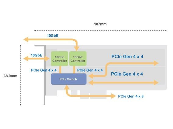 Rozširujúce karty s 2x M.2 PCIe Gen4 NVMe SSD a 2x 10GbE portami