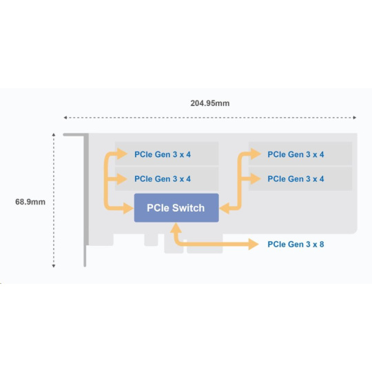 Technické špecifikácie| Konektor | 4 x M.2 2280 PCIe (Gen 3 x 4) NVMe SSD sloty |