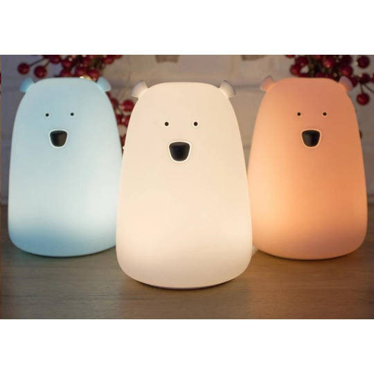 je vyrobená z príjemného a mäkkého silikónu. Vďaka možnosti výberu zo troch farebných prevedení je skvelou voľbou ako do dievčenskej, tak chlapčenskej izbičky. Tento rozkošný kamarát bude svojím príjemným svetlom robiť vašim deťom spoločnosť pri večernom zaspávaní, ale pokojne aj chvíľu po ňom. V prípade, že medvedíka zabudnete vypnúť, sám sa po 2 hodinách svietenia automaticky vypne. Deti si svietiaceho medvedíka tak obľúbia, že ho budú chcieť brať so sebou aj na dovolenku či víkendový pobyt. Lampička je určená na svietenie, nie je hračkou.