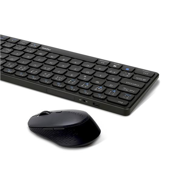Táto ultratenká stolová súprava využíva prvotriedne materiály v elegantnom a kompaktnom dizajne, v ktorom však nechýba numerická klávesnica. Vďaka pevnej hliníkovej základni je telo klávesnice odolné a pevné. Zároveň dodá každému pracovisku štýlový nádych. Klávesnica E9700M nie je pokročilá len dizajnom, ale aj funkčnosťou. Ponúka technológiu viacrežimového pripojenia Rapoo - prostredníctvom spoľahlivého 2,4 GHz bezdrôtového vysielača, Bluetooth 3.0 a 5.0 - umožňuje súčasné pripojenie a prepínanie viacerých zariadení (s automatickým párovaním). Myš v tejto sade je vybavená vysoko výkonným optickým snímačom, plne nastaviteľným v rozsahu 600 až 1600 DPI a tichými spínačmi. Okrem toho je klávesnica vybavená ekologickou dobíjacou batériou, takže si môžete naplno užívať slobodu bez káblov.