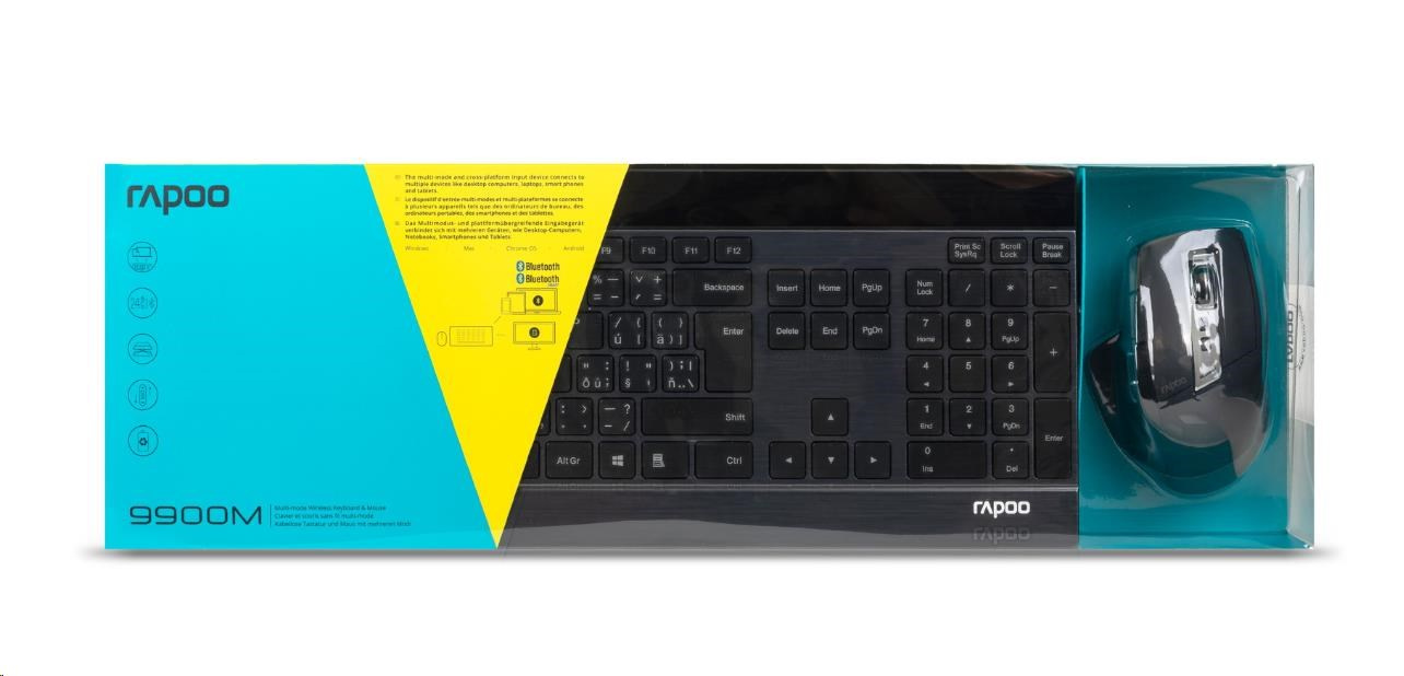 Súprava klávesnice a myši RAPOO 9900M multirežimová bezdrôtová ultratenká CZ/SK, čierna