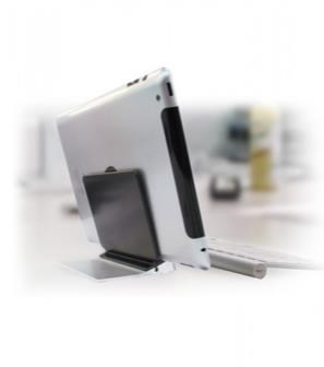 Stojan na 7-11" tablety v horizontálnej a vertikálnej polohe na stole. Robustná dvojdielna hliníková konštrukcia na jednoduchú prepravu a odolnosť proti rozbitiu, tablet sa opiera o spodný okraj, strieborná/čierna...