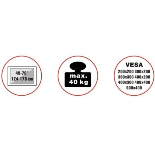 Unikátna televízna skrinka na Plasma a LCD TV s uhlopriečkou 49"- 70" (124-178cm) a hmotnosťou maximálne 40kg. Dizajnová kombinácia kovovej konštrukcie + 4x drevené nohy (orech). Precízne tvary a vedenie káblov pre maximálny estetický zážitok. Upevnenie VESA: 200x200, 300x200, 300x300, 400x200, 400x400, 600x400.