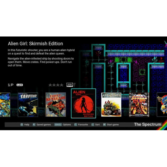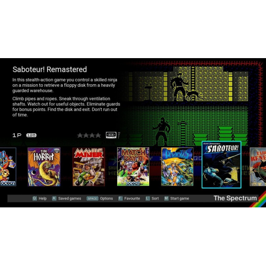 48 zabudovaných hier vrátane Manic Miner, The Hobbit a Head Over Heels