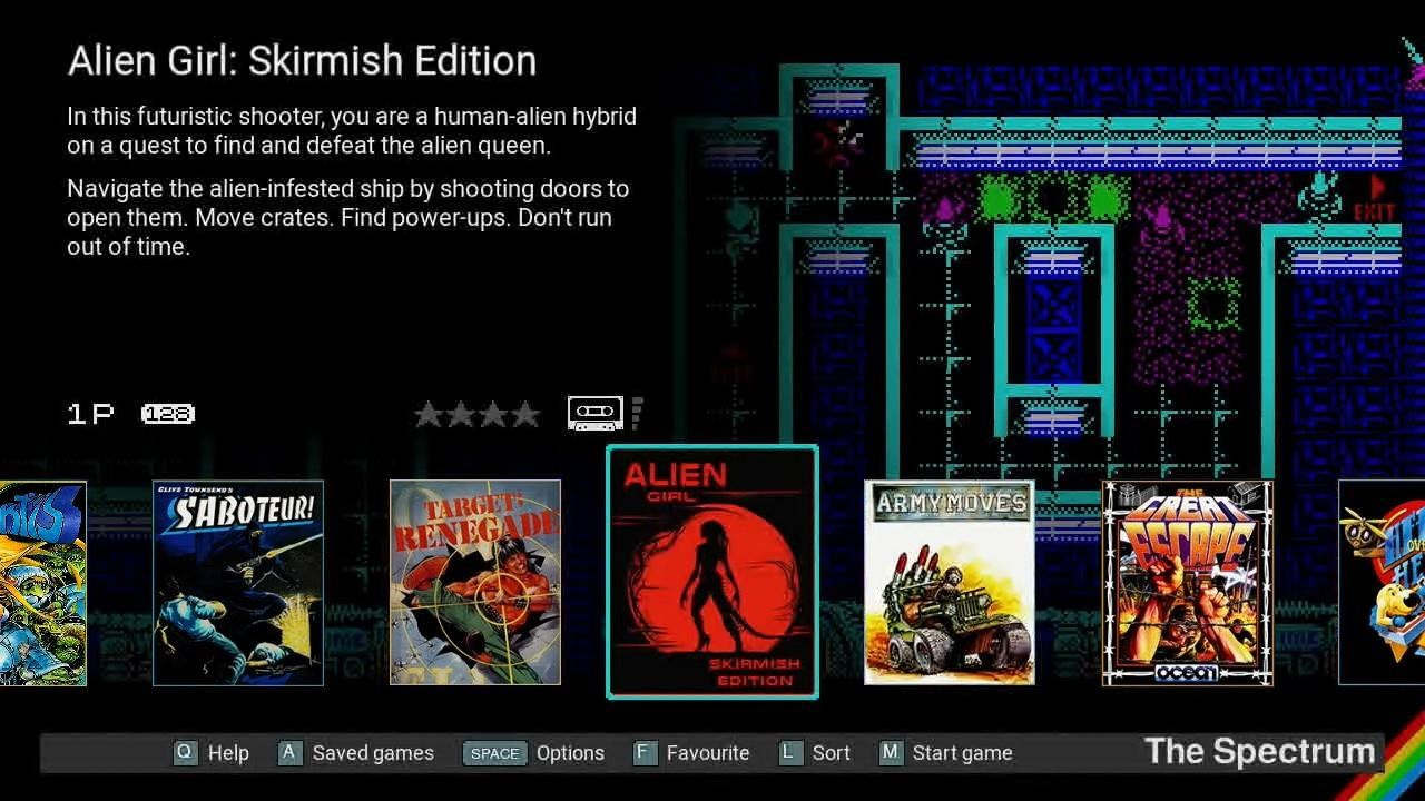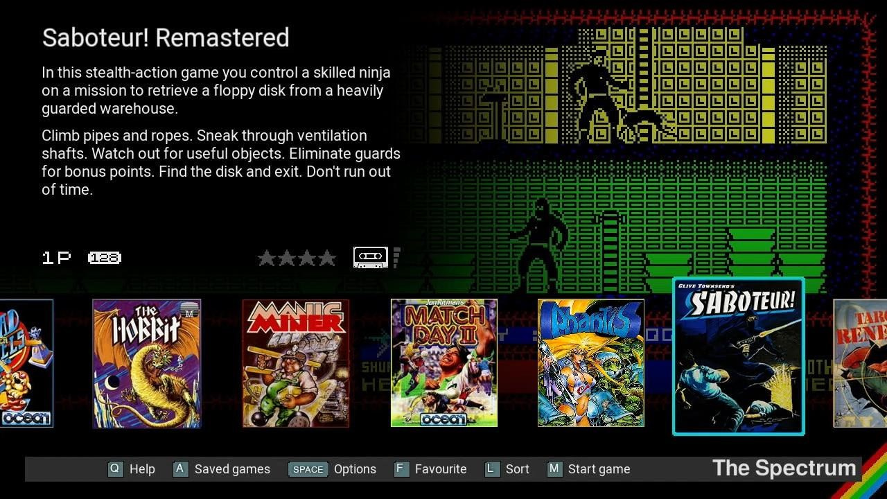 48 zabudovaných hier vrátane Manic Miner, The Hobbit a Head Over Heels