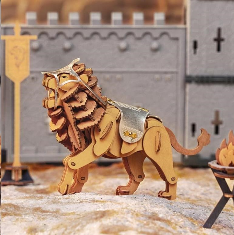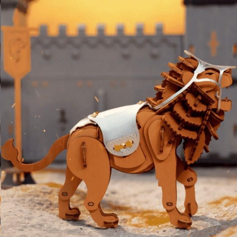 Tento skvelý bojovník nesmie chýbať v žiadnej bitke slávneho generála. S ním nebude žiadna bitka prehranú! 3D drevené puzzle Bojovný lev - Warior Lion prináša veľa zábavy nielen pri skladaní, ale aj pri hraní. Výborne sa dopĺňa s Bojovým slonom (kód TWA02) a Vlk bojovník (TWA04). Model má pohyblivé nohy, kožené strieborné brnenie so zlatými detailmi, ktoré poskytuje všestrannú ochranu pred záškodnými nepriateľmi. Zároveň je krásnou dekoráciou na vystavenie pre nadšencov 3D puzzle.