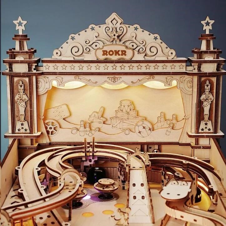 Ak ste fanúšikom klasického pinballu, určite si užijete prácu na tejto skladačke. Ide o pinballový automat v štýle vintage, ktorý vás vráti do starých dobrých 90. rokov. Použité motívy akrobatických a kúzelnických vystúpení vás zavedú do cirkusovej manéže. Už len samotné skladanie bude zábavné, a čo potom, keď sa pochválite priateľom či rodine a stretnete sa pri hraní tejto hry so všetkými zvukovými a svetelnými efektmi a elektronickým zaznamenaním skóre. Odpáľte guľu a sledujte, ktorý cieľ zasiahnete a koľko bodov získať. Na dosiahnutie čo najvyššieho počtu bodov upravte rýchlosť a smer odpalu gule.