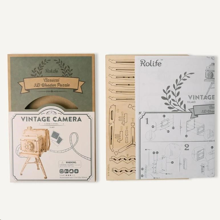 RoboTime dřevěné 3D puzzle Historický fotoaparát