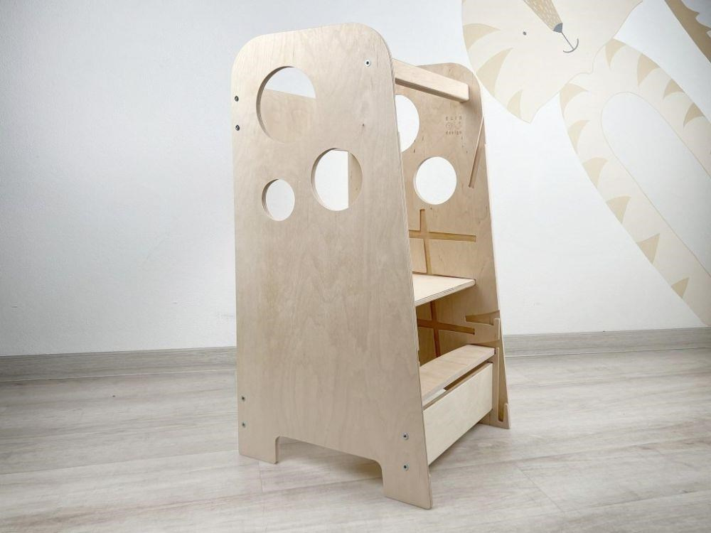 Rostoucí učící věž 3v1 Bublina Max 75 cm, přírodní (natur)