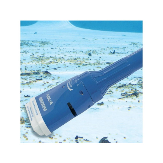 Na uvedenie vysávača do prevádzky stačí stlačiť tlačidlo ON. Vysávač je batériový, takže na jeho prevádzku nie je potrebná sacia sila pieskovej filtrácie alebo kábel. Vysávač je napájaný batériami typu D a vydrží v prevádzke až 3 hodiny. Aqua Broom vyniká veľkým sacím výkonom a vyčistí tak Vašu vírivku alebo bazén od všetkých drobných nečistôt na dne. Už nikdy žiadne odstraňovanie nečistôt pomocou sieťky alebo manuálneho vysávača cez pieskovú filtráciu.