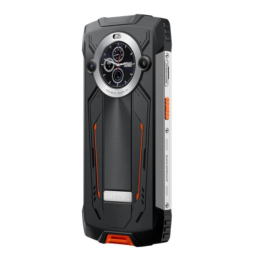 Rugged Smartphone Blackview BV8200 4G G100 12GB 256GB 8800-45W A14, Watch Display, Flashlight, Black w Orange [No Charge