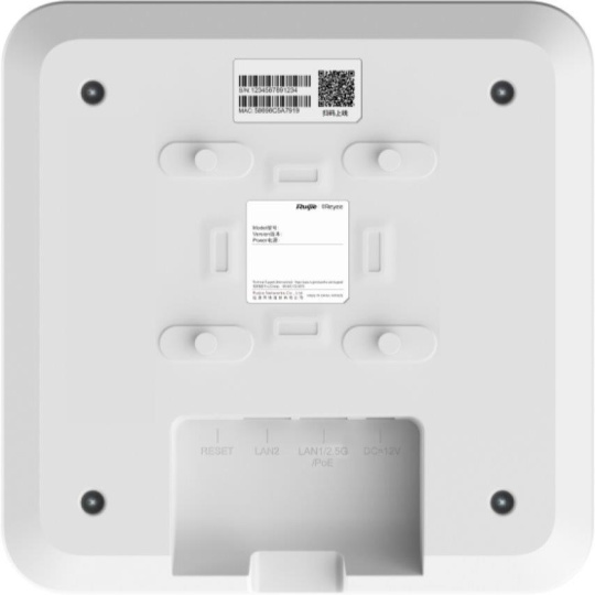Popis produktu RG-RAP2260 je bezdrátové Wi-Fi 6 Access Point s montáží na strop ži zeď od společností Ruijie Reyee s plnou podporou roamingu pro bezproblémový přechod mezi jednotlivými AP. Zařízení je vybaveno dvěmi LAN porty(1x Gigabit, 1x 2.5-Gigabit) z čehož 2.5-Gigabit port podporuje napájení přes 802.3at PoE, Dual Band Wi-Fi 6 2x2 MU-MIMO rádio s modulačními rychlostmi 574 Mbps ve 2.4 GHz a 2402 Mbps v 5 GHz pásmu s využitím 160 MHz kanálu. Hlavní přednosti • Snadno rozšiřitelná Wi-Fi pomocí Reyee Mesh • 10/100/1000 Mbps + 100/1000/2500 Mbps LAN • Podpora MU-MIMO, Roaming, Beamforming, OFDMA • Vysoká propustnost díky WiFi 6 a 2x2 MIMO v obou pásmech • Vnitřní provedení • Napájení přes 802.3at PoE a 12V DC konektor • Management pouze přes Ruijie Cloud Obsah balení • Zařízení • Montážní držák • Šroubky Technické parametry Bezdrátové vlastnosti Bezdrátové frekvence:2.4 + 5 GHz (dual band) WiFi standardy:802.11ax, 802.11ac, 802.11ac - wave2, 802.11n, 802.11a, 802.11b/g MU-MIMO:Ano Přenosová rychlost - 5GHz [Mb/s]:2402 Přenosová rychlost - 2.4GHz [Mb/s]:574 Vysílací výkon 2.4GHz [dBm]:28 Vysílací výkon 5GHz [dBm]:30 Šifrování:WPA-PSK/WPA2-PSK 2.4GHz MIMO:2 x 2 5GHz MIMO:2 x 2 Typ antény:Vestavěná Počet vestavěných antén:2 Roaming:Ano Zisk antény [dBi]:3 Konektory a rozhraní Rychlost LAN:(1) 100/1000/2500Mbps + (1) 10/100/1000Mbps Gigabit LAN:Ano Napájení Napájení přes PoE:802.3at Typy PoE:PoE-In (pouze) Max. spotřeba energie [W]:18 Napájení přes konektor/svorkovnici:12V / 2A Fyzické charakteristiky Použití:Vnitřní Tlačítka:Reset Provozní teplota [°C]:0 až 40 Hmotnost [g]:650 Šířka [mm]:194 Výška [mm]:45 Hloubka [mm]:194 Software Operační mód:Access Point Výchozí IP adresa:Dynamická z DHCP, 10.44.77.253 Výchozí jméno a heslo:Nastavuje se při prvním spuštění.