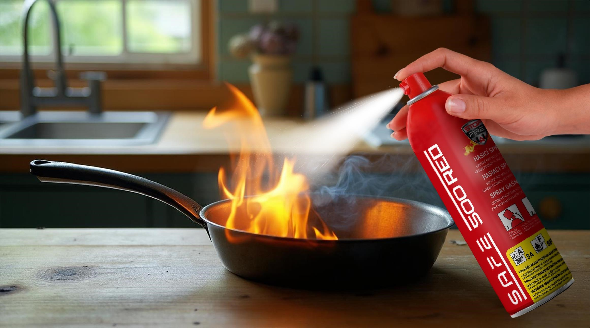 S hasicími spreji SAFE už nemusíte řešit, zda je zvolený hasicí prostředek pro daný typ požáru vhodný. Unikátní ekologické složení s aktivními látkami umožňuje bezpečné a účinné hašení požárů pevných látek, tuků i olejů. Speciálně upravený proud hasiva maximalizuje účinnost samotného hašení – za rozprašovačem se mění v jemný pěnový aerosol, který dokáže pohltit velké množství tepelné energie vznikající při hoření. Díky tomu nabízí SAFE spolehlivou ochranu v nejrůznějších situacích a přispívá k bezpečí vašeho domova i pracoviště.