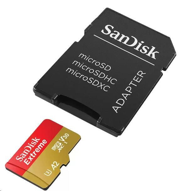 Karta SanDisk micro SDXC 256GB Extreme (190 MB/s Class 10, UHS-I U3 V30) + adaptér