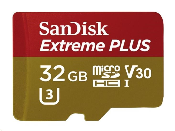 Karta SanDisk MicroSDHC 32GB Extreme PLUS (10MB/s, UHS-I V30, Rescue Pro Deluxe) + adaptér