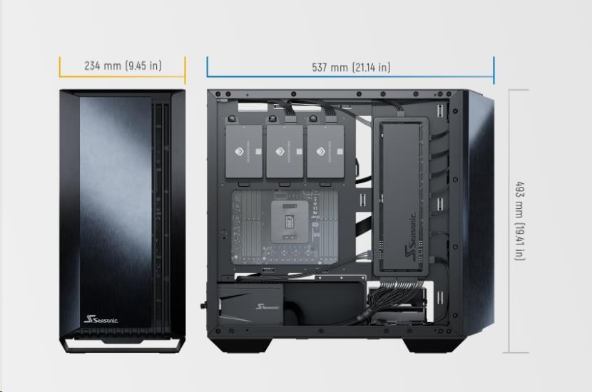 Najmodernejšia séria Seasonic SYNCRO Q7 je šasi ATX typu mid-tower, ktoré má hliníkové telo a panel z tvrdeného skla na jednej strane a modul Seasonic SYNCRO CONNECT na druhej strane. Táto zostava dokáže pojať výkonný hardvér a poskytuje všestranné možnosti chladenia a vetrania. Modul SYNCRO CONNECT funguje ako káblový rozbočovač, ku ktorému sú komponenty priamo pripojené spravidla kratšími káblami. Toto nastavenie zjednodušuje vedenie káblov a umožňuje čistý vzhľad na oboch stranách skrine.