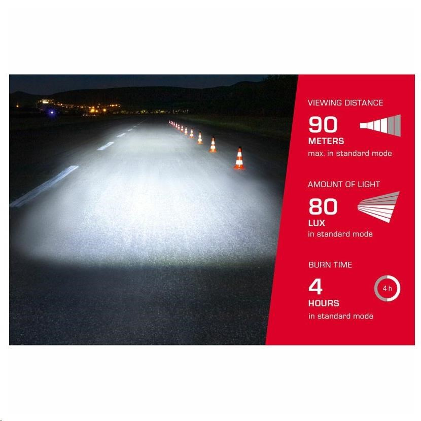 Aura 80 USB je vybavená LED Osram. V kombinácii s vysoko výkonnou optikou vytvára veľmi rovnomerné rozloženie svetla vo všetkých svetelných zónach.