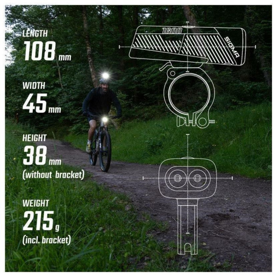 Svetelný kužeľ svetla Buster 1600 je naozaj unikát. Perfektne nasvieti cestu aj chodník tak, aby cyklista oveľa lepšie videl do zákrut a na terén. Umožňuje to novo vyvinutá dvojitá šošovka so dvomi rôznymi optikami a dvomi prémiovými LED od spoločnosti Osram. Výsledkom je množstvo svetla a najmä veľmi široký a homogénny svetelný kužeľ. Logo SIGMA na podélných stranách svetla zabezpečuje podstatne lepšiu viditeľnosť zo strany a tým aj vyššiu bezpečnosť v cestnej premávke
