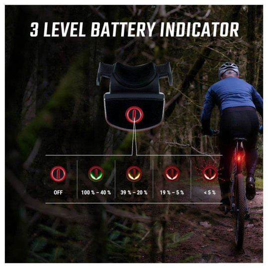 Svetlo sa zapína dvojitým stlačením. Veľké tlačidlo zapnutia je možné ľahko ovládať aj v rukaviciach. Týmto spôsobom sa zabezpečí, že zadné svetlo je možné bez problémov schovať do vrecka dresu alebo do batohu, aby sa náhodou nerozsvietilo.