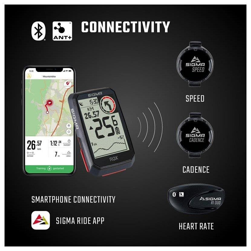 Prostredníctvom Bluetooth možno dáta z cyklopočítača odosielať do smartfónu a v aplikácii SIGMA RIDE ich ukladať a vyhodnocovať. Najdôležitejšie údaje a štatistiky je možné prehľadne usporiadať do farebných dátových polí, rýchlo ich zobrazovať na displeji a pohodlne vyhodnocovať.