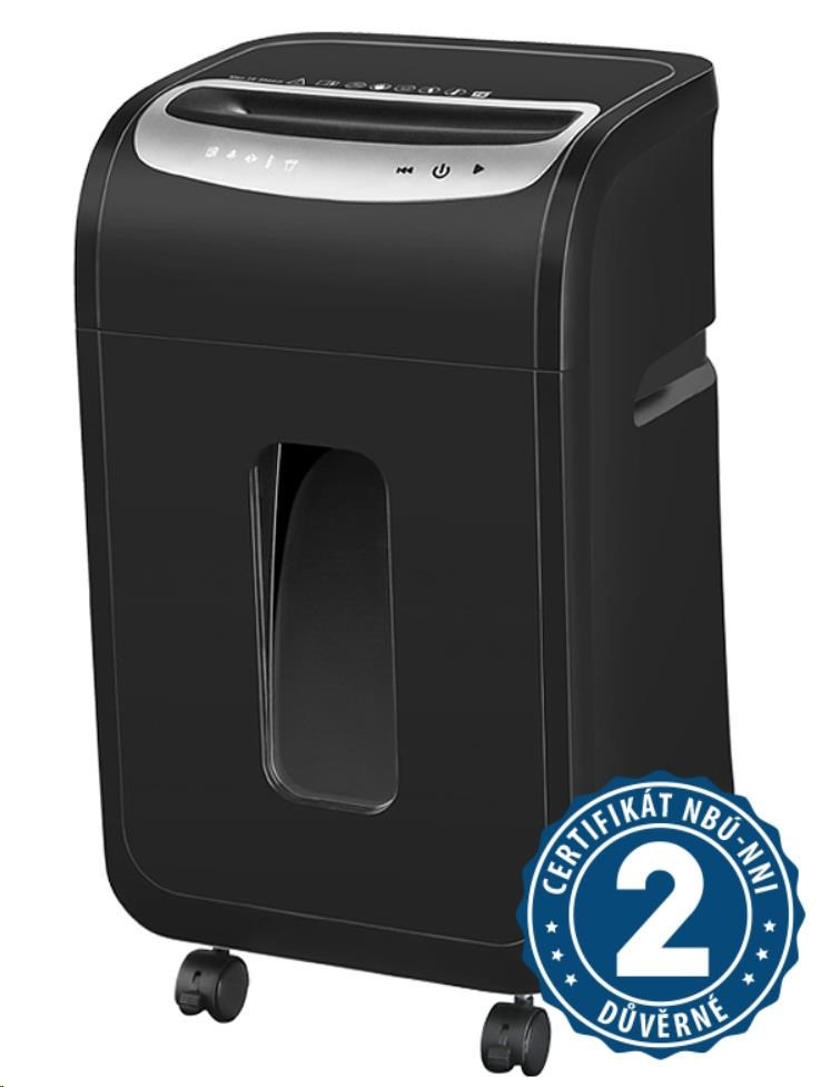 LED kontrolka informuje o zapnutí alebo prehriatí stroja a AT-16MC zvládne skartovať aj sošívačky. Skartovač ponúka aj stupeň utajenia P-5.