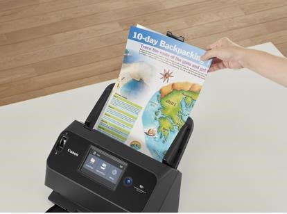 Kompaktný stolný skener imageFORMULA DR-S130 ponúka flexibilné možnosti pripojenia cez USB alebo sieť (Wi-Fi) a jednoduché a intuitívne ovládanie vďaka farebnému dotykovému displeju.