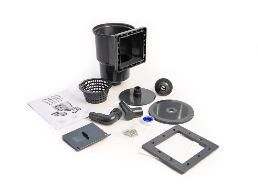 Univerzální skimmer pro téměř všechny bazény s ocelovou stěnou na trhu s otvorem ve stěně 148 x 140 mm. Skimmer je připojitelný na bazénové hadice o rozměru 32 nebo 38 mm. Součástí balení skimmeru jsou vratná tryska (pro otvor 60 mm a připojení bazénové hadice 32/38 mm), sběrný košík, plovoucí klapka proti návratu nečistot do bazénu a víko s adaptérem pro připojení ručních a poloautomatických vysavačů.